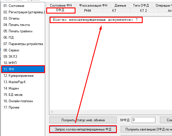 Если количество неподтвержденных документов не равно 0, то данные в ОФД не ушли.