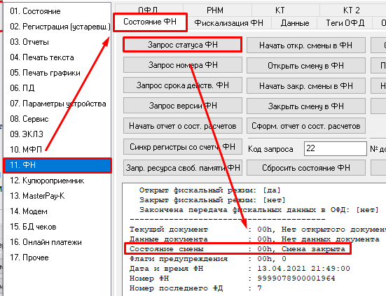 Если смена уже закрыта и нужно только закрыть архив ФН, нужно снова подать команду нижнего уровня