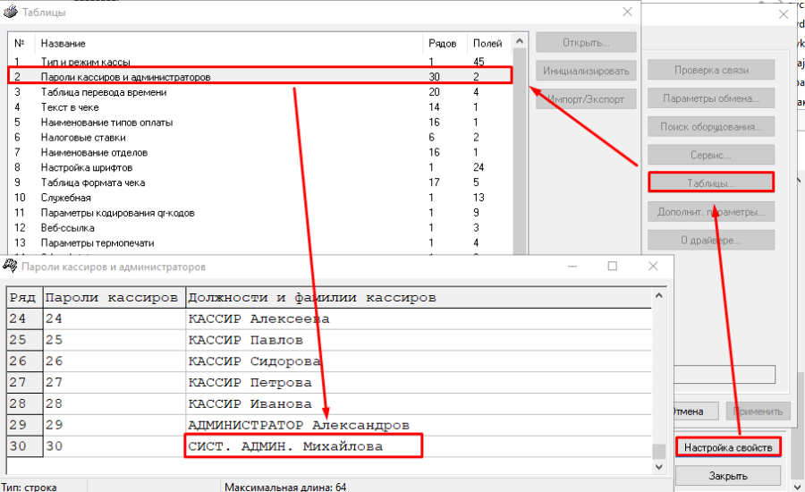 Укажите имя и должность оператора или любого кассира или директора в таблице 2 поле 30: