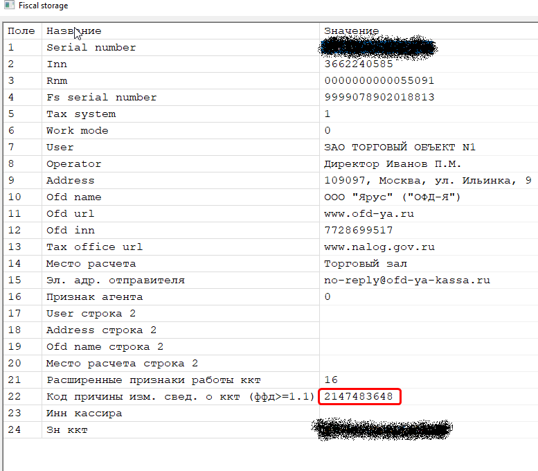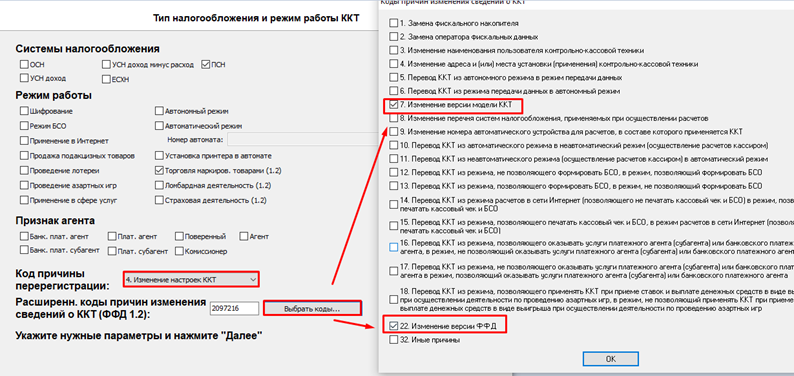 При перерегистрации без замены ФН с ФФД 1.2 на ФФД 1.2 необходимо указать причину перерегистрации. Но на Тесте Драйвера 868 и ниже есть баг, при котором код причины не копипастится в 18 таблицу, поэтому это следует делать вручную и обновить тест драйвера с сайта. Например, забыли указать "Торговля маркированной продукцией", и нужно выполнить перерегистрацию: