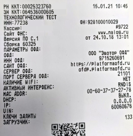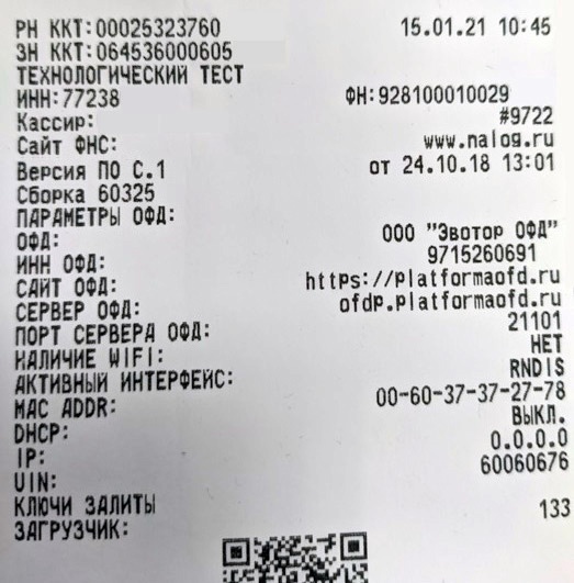 Чтобы его вывести из этого состояния, нажмите кнопку промотки еще раз. Онлайн-касса напечатает техническую информацию еще раз и выйдет из данного режима.