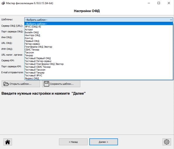 Указываем настройки ОФД из выпадающего окна.