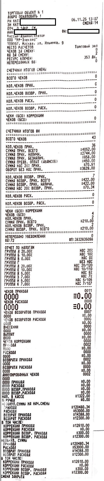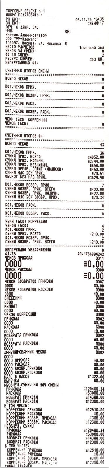 Счетчики в онлайн-кассе, которые печатают информацию о пробитых суммах за смену, являются неофициальной опцией всех онлайн-касс для удобства кассиров. Работа их нигде не регламентирована ни на законодательном, ни на каком либо другом уровне. Поэтому разные онлайн-кассы считают дневную выручку по-разному, а у некоторых онлайн-касс бывает и такое что этой опции даже и нет - печатается только то, что требует законодательство, и отчет о закрытии смены становится похож внешне на отчет об открытии смены. А в последней версии прошивки печать счетчиков можно вовсе отключить: