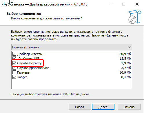 Либо устанавливаем Тест Драйвера 6.18 и выше по ссылке, указав службу kktproxy в параметрах установки (не путать со старой и неэффективной службой ofdconnect):