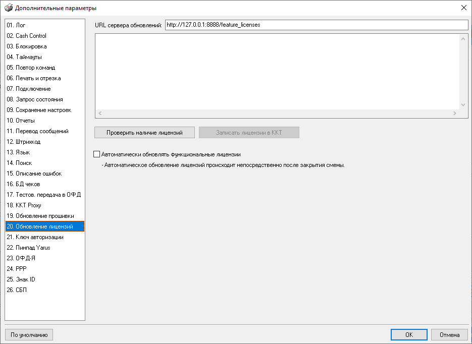 А. Поставить галочку «Автоматически обновлять функциональные лицензии». В этом случае драйвер будет проверять наличие обновлений и автоматически обновлять лицензию после закрытия смены в ККТ.